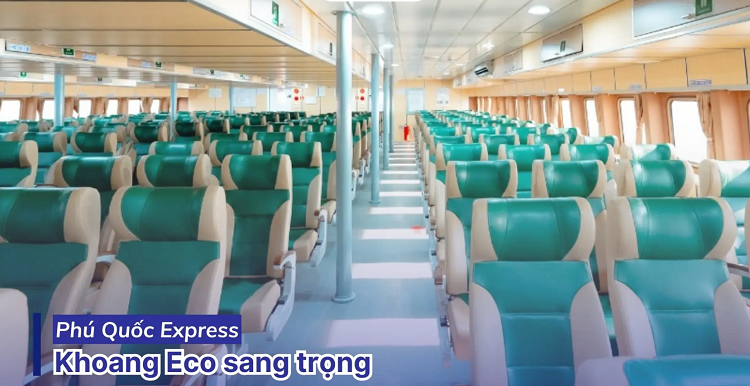- Tầng 1 & 2 (Hạng Eco): Khu vực ghế ngồi phổ thông rộng rãi, ghế bọc da cao cấp, khoảng cách để chân thoải mái.
