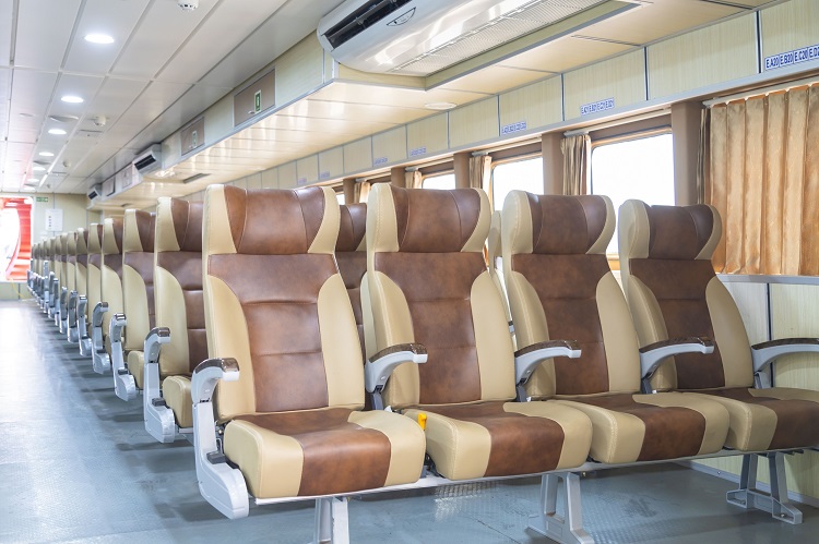 - Tầng 1 & 2 (Hạng Eco): Khu vực ghế ngồi phổ thông rộng rãi, ghế bọc da cao cấp, khoảng cách để chân thoải mái.